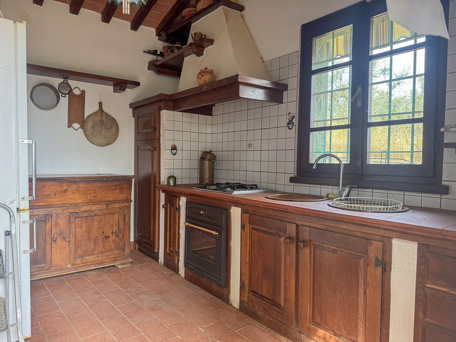 Krásný kamenný statek situovaný na kopci v Uzzanu, snadno dostupný po asfaltové silnici. Nemovitost je velmi charakteristická a nachází se v dobrém stavu, obklopená velkou zahradou a pozemkem o rozloze 17 000 m² s přibližně 300 olivovníky.