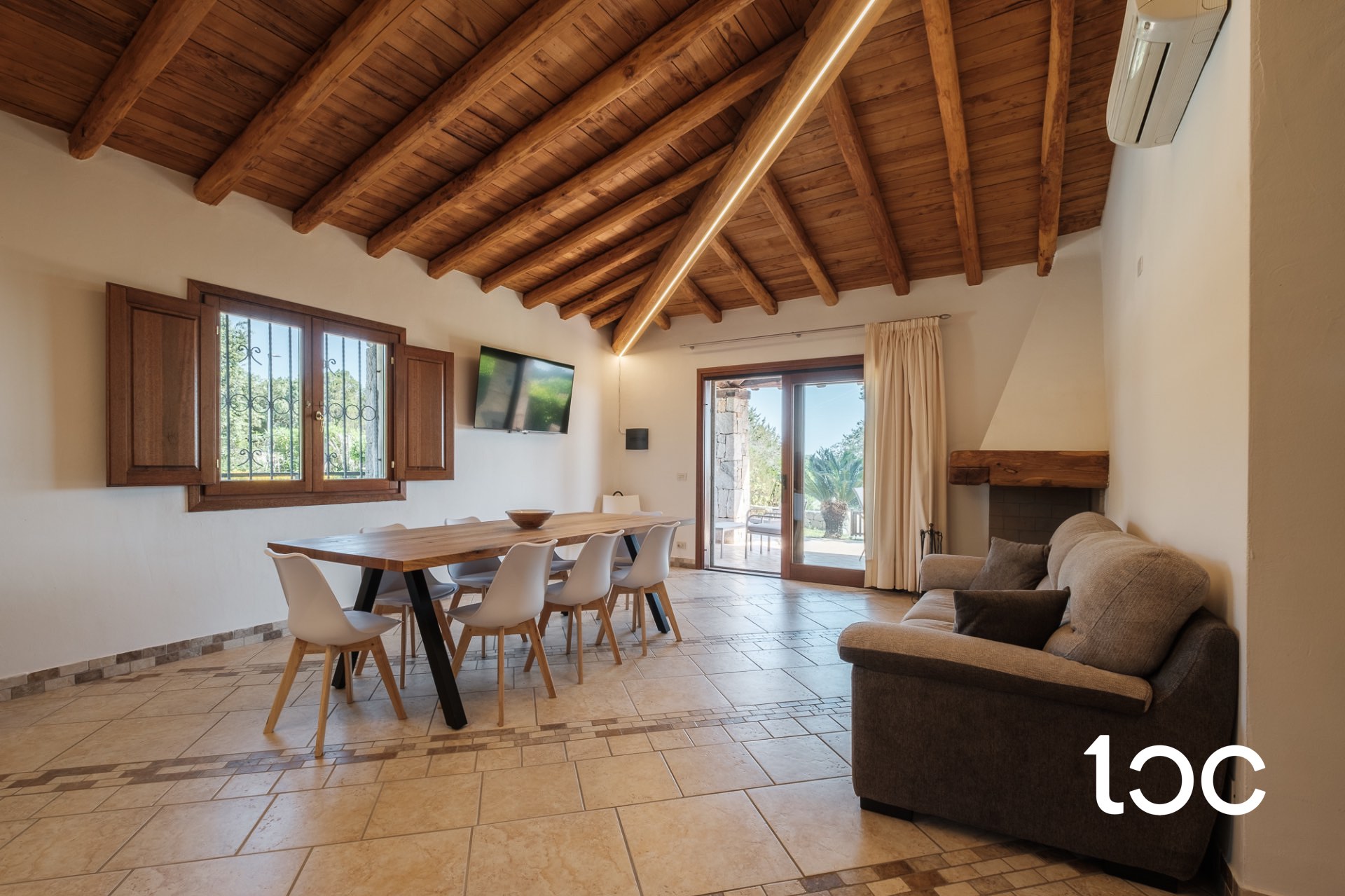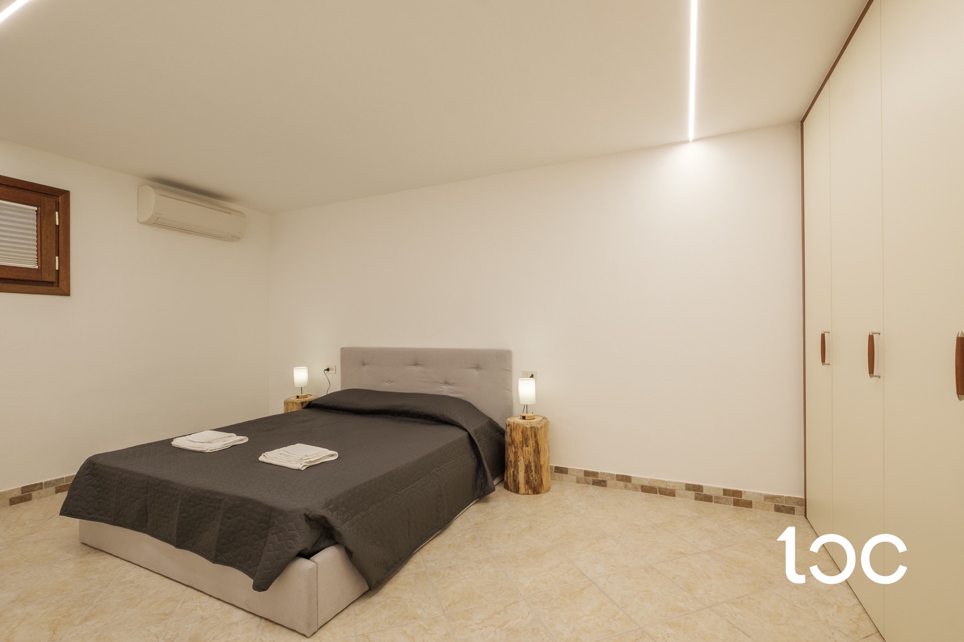 V přízemí domu se nachází světlý obývací a jídelní prostor, moderní plně vybavená kuchyně s přímým vstupem ven a jedna dvoulůžková ložnice s vlastním vchodem a koupelnou. Atmosféru dotváří stylový krb. Spodní podlaží nabízí čtyři prostorné ložnice a tři koupelny, přičemž všechny pokoje mají klimatizaci a přímý přístup k bazénu. Každý z nich je navržen tak, aby poskytoval maximální soukromí a komfort jak majitelům, tak hostům.